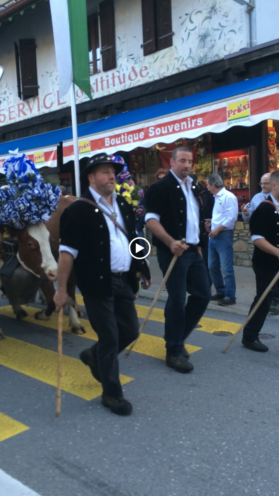On Saturday, we went to "La Desalpe in St-Cergue." This is a major celebration that marks the end of the Alpine summer pasture grazing season- over 700 cows parade through the village during their descent from the mountain top making their way home for the winter. I had read to get there early, because this is a very popular event, so we woke up early and arrived in St-Cergue around 7:30, which was about 45 minutes from our house. We didn't really know the parade route, but we quickly learned when we heard loud cowbells and saw large cattle coming our way! I have been to many parades in my life, but this was like nothing I had ever seen- a huge herd of cattle being paraded around by their shepards literally right through the village. I was really hoping the whole time that the cows would stay on the path- we did see a few stray from the parade- thankfully not by us. Eliza loved seeing the cows- kept saying "moo", Adalyn was hesitant at first, but in the end was right there next to the cows. They parade throughout the whole day, just different herds coming down, so we would be walking around looking at the booths, and all of a sudden you would hear the cowbells and suddenly another herd was walking right by you- needless to say, when we got home, all of our shoes needed a good washing!